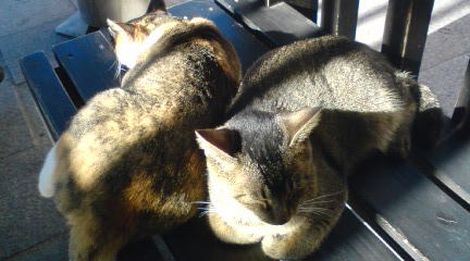 ソフトクリーム屋さん前のベンチにて♪ぽっかぽか(〃∇〃) てれっ☆