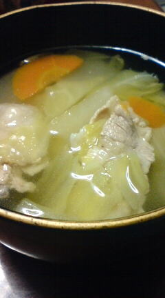 1.キャベツ、にんじん、豚肉を一口大に切る・・・(A)