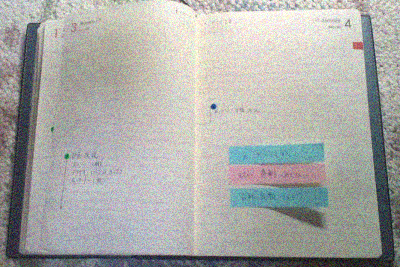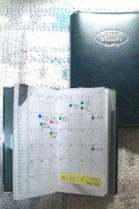 黄=集金、赤=重要、青=社内業務、緑=プライベート、白=納品、