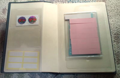 1.別売のポケット(シール)を購入し、裏表紙の左右に貼り付け★